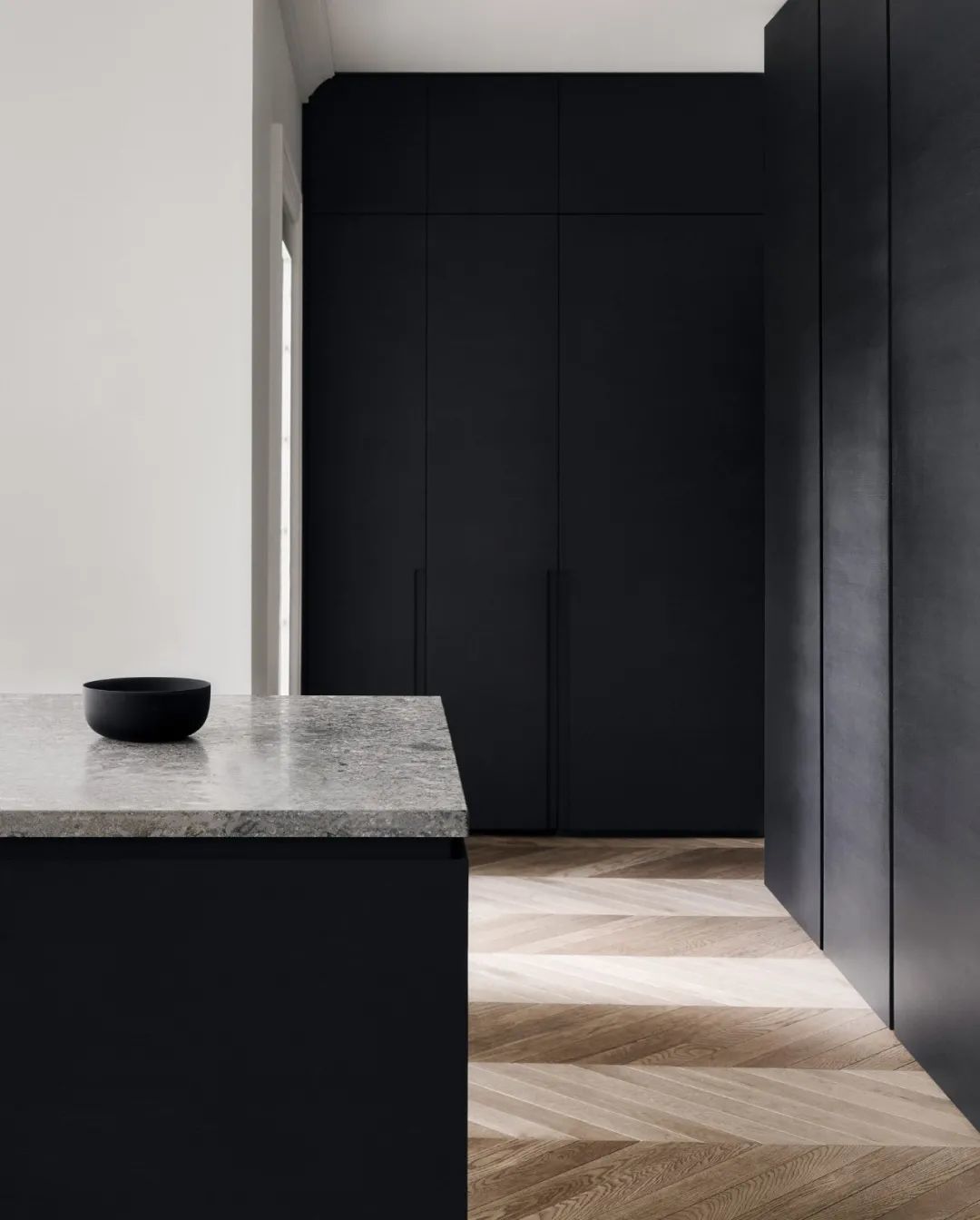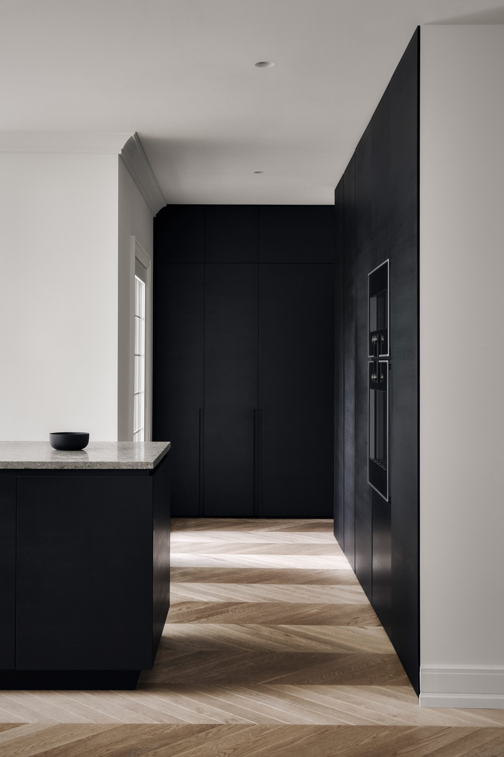 一體式壁柜收納了所有必須的廚房電器,保持視野整潔