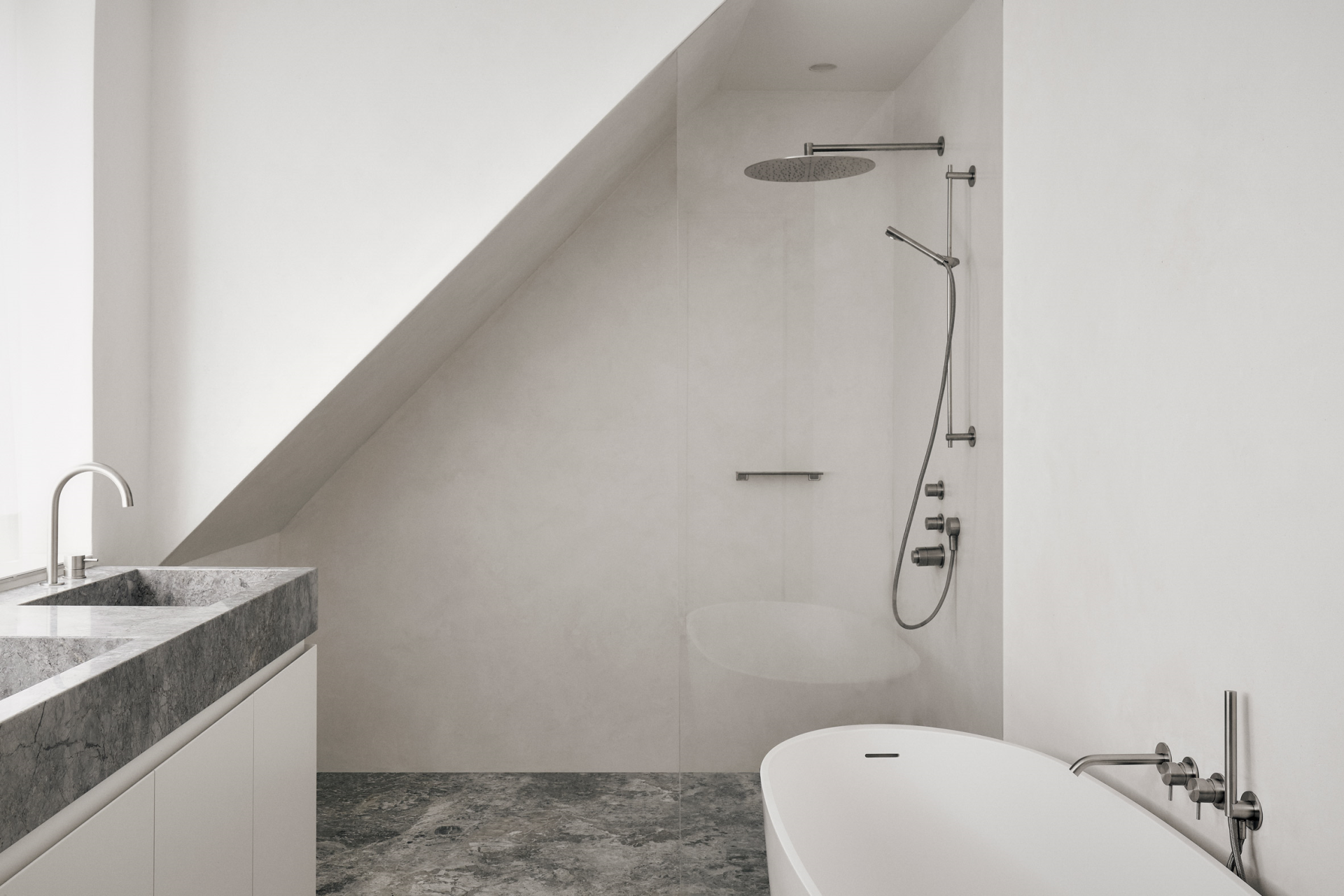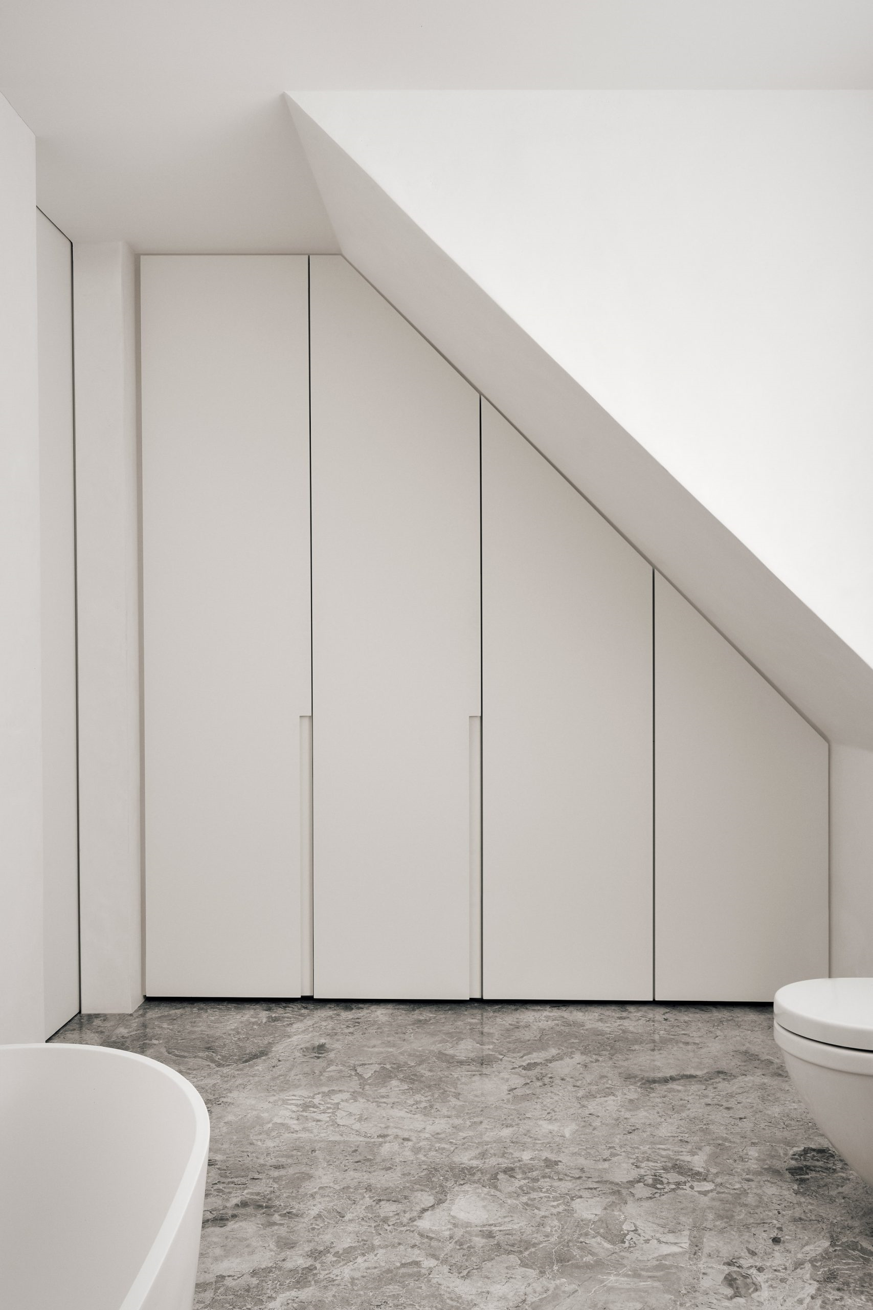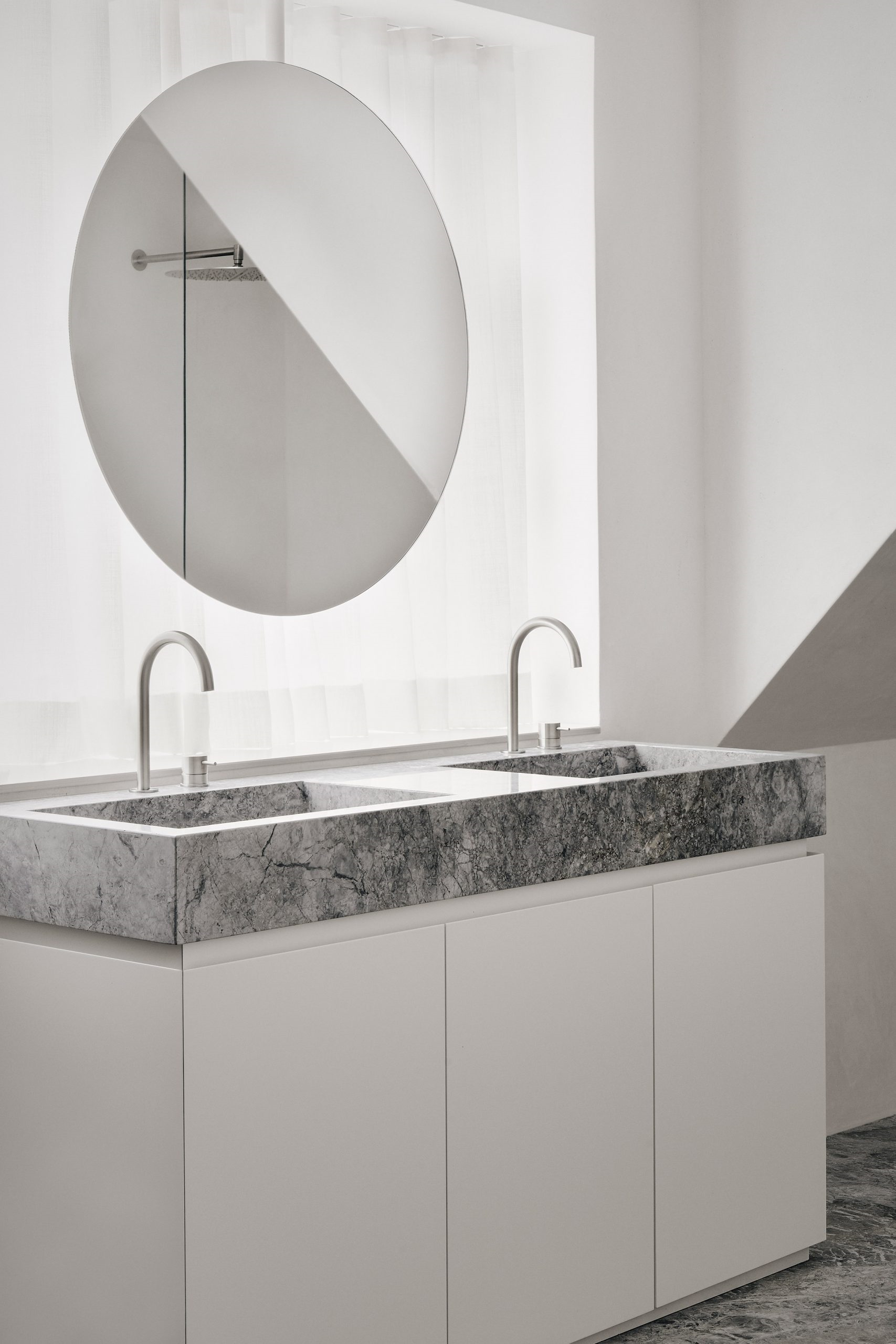 衛(wèi)生間選用純凈白色搭配灰色大理石用天然質(zhì)感凸顯空間調(diào)性
